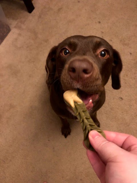 You can find your own WHIMZEES Brushzees 30 Day Dental Dog Treats here and for the medium size which is for 25-40 pound pups at $34.99. Keep min mind, our Molly is actually 51 pounds but these were still the perfect size for her so I would suggest trying the smaller size from the wieght! The best part is with Chewy's fast shipping you can order your toys tonight, and get them by Friday! Seriously they move that fast so make sure to check them out!